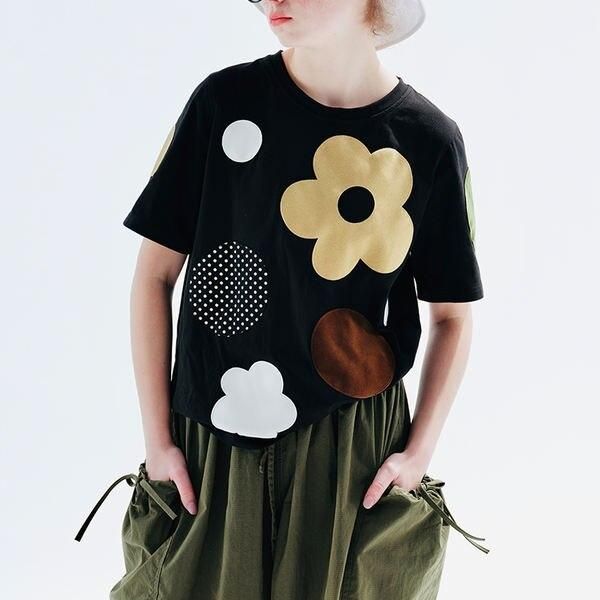 Chic Black & White Floral Half-Sleeve Casual T-Shirt