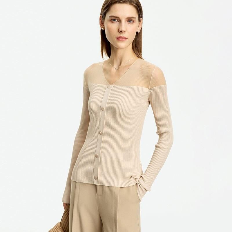 Slim-Fit V-Neck Patchwork Sweater for Women