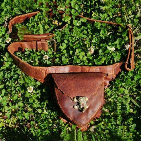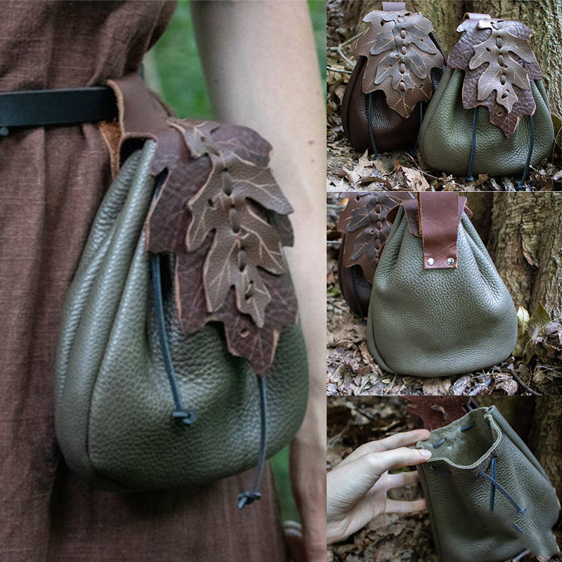 Faux Leather Medieval Leaf Pattern Belt Bag