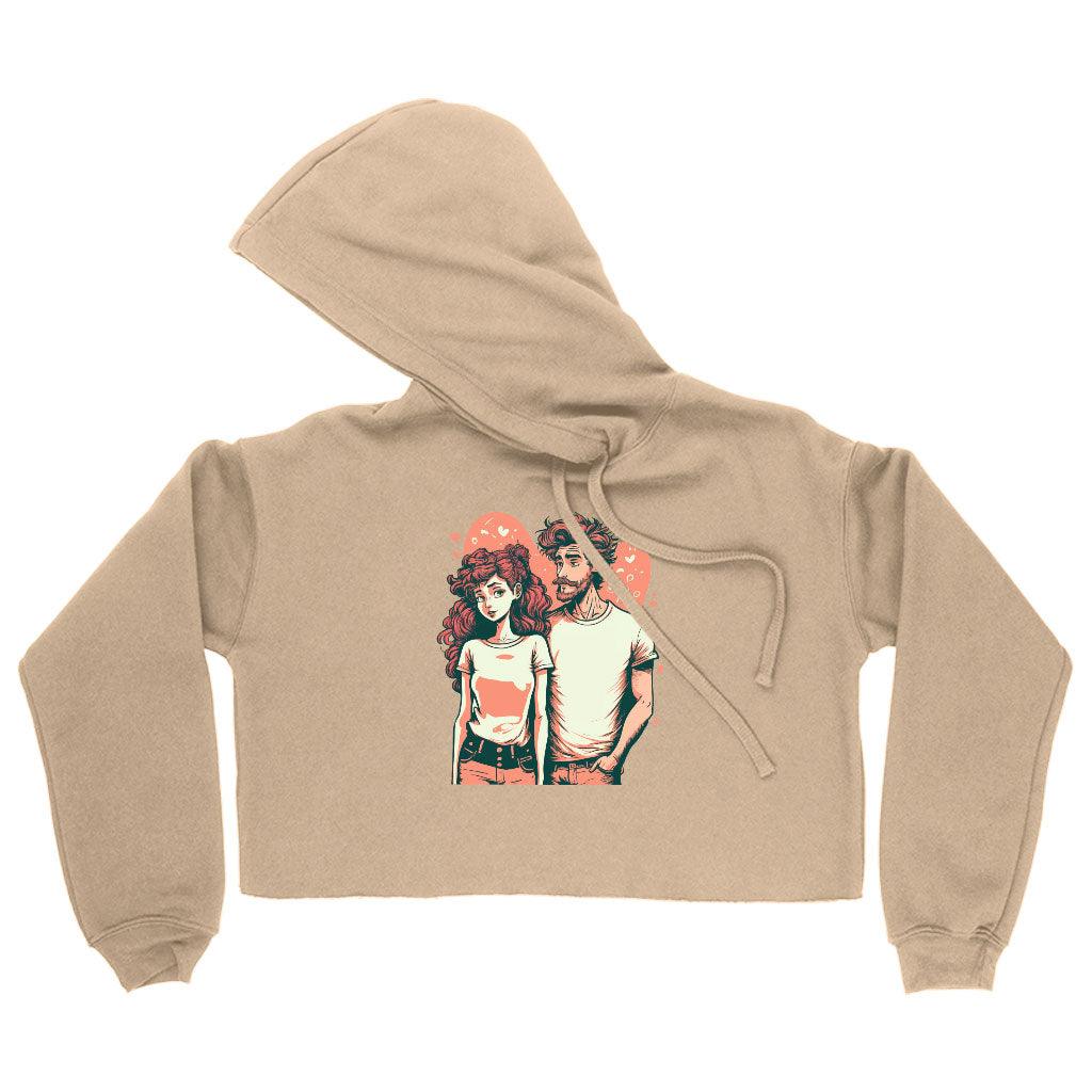 Love Print Women's Cropped Hoodie - Romantic Cropped Hoodie - Printed Hooded Sweatshirt