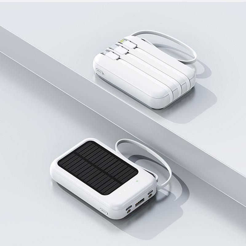 Solar Power Bank 20000mAh with LED Lights & Built-in Cables