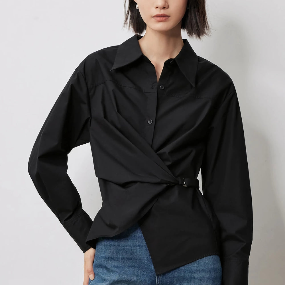 Autumn Twisted Tie Waist Long Sleeve Blouse