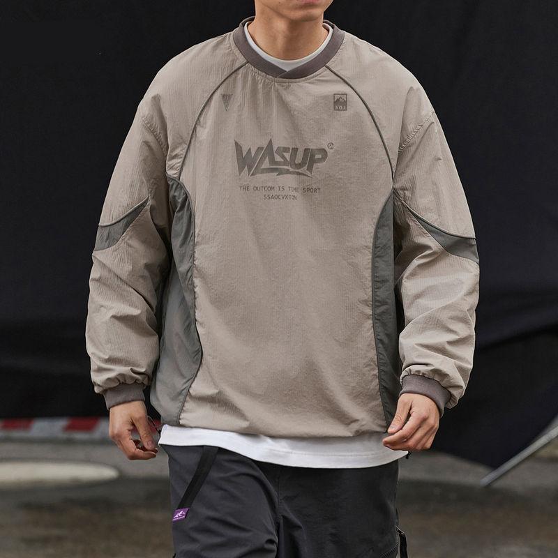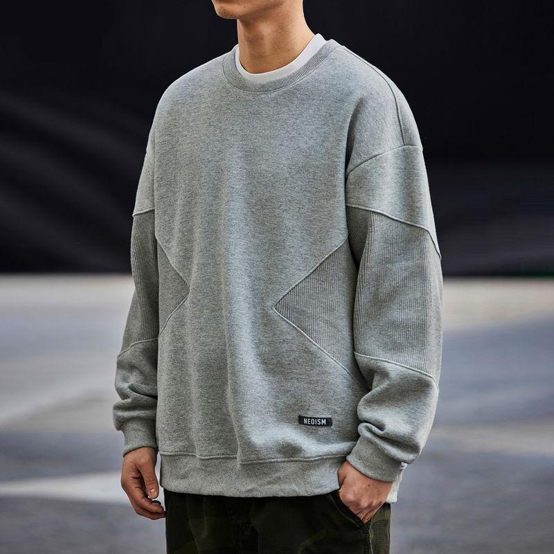 Spring Korean Streetwear Patchwork Crew-Neck Hoodie for Men