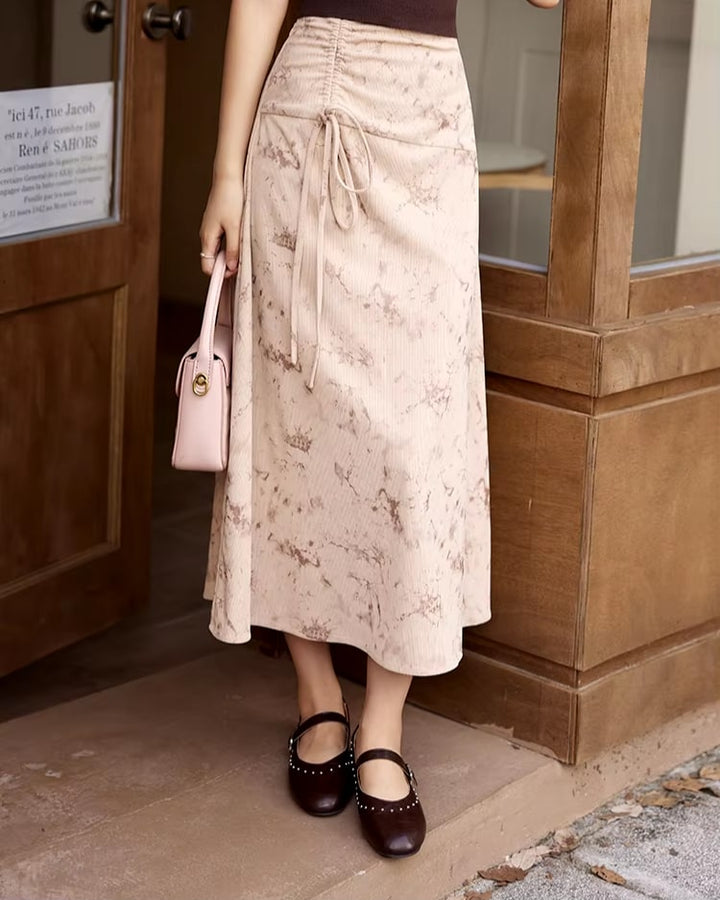 Whether you’re heading to the office or a weekend brunch, this skirt adapts to any occasion with ease. Its floral print and unique lace-up design set it apart, creating a look that’s both fashionable and timeless. The slight elasticity and soft corduroy fabric ensure you stay comfortable throughout the day, while the high-waist design accentuates your natural silhouette. Pair it with a cozy sweater or chic blouse, and you’ll turn heads wherever you go.