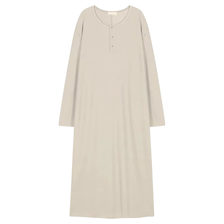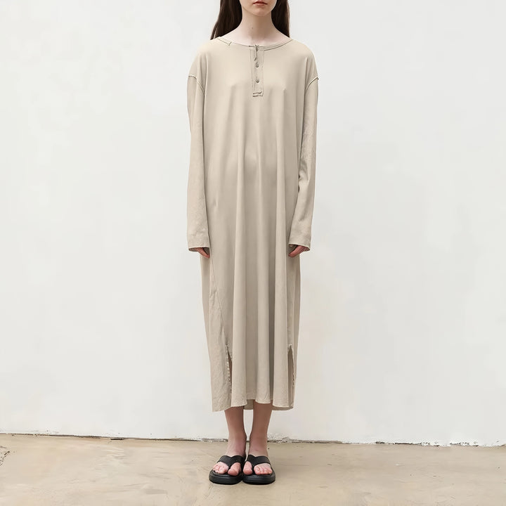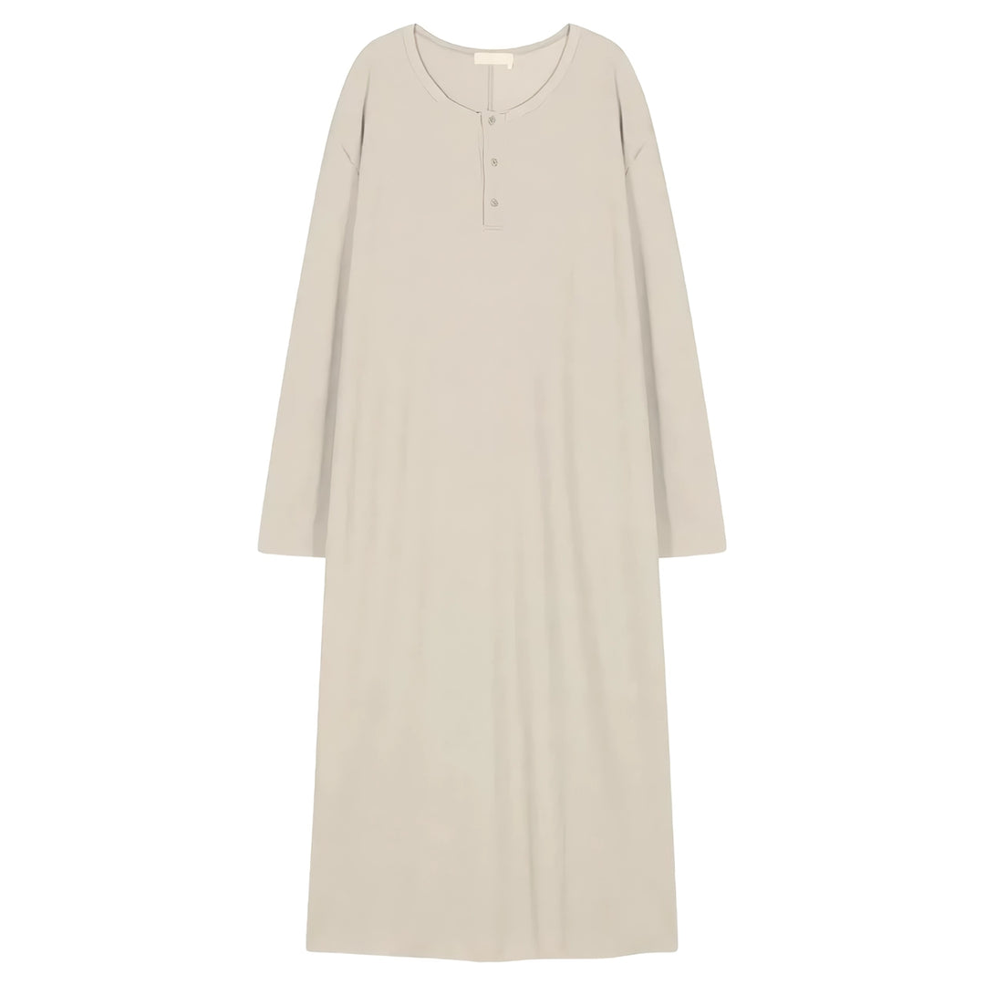 Step into a world of understated elegance with our new long-sleeved dresses for women. These mid-length knit dresses are thoughtfully designed for those who appreciate casual, artistic style and a relaxed fit. Perfect for both spring and autumn, this dress will become your go-to for those breezy, in-between seasons. The loose-fitting silhouette ensures both comfort and effortless style, allowing you to move freely while staying chic. Crafted from a premium cotton blend, this dress feels soft against the skin and offers slight stretch for an easy fit. Its simple yet artistic design, paired with an ankle-length cut, makes it suitable for casual outings, work, or even relaxed weekend gatherings. The solid gray color brings a versatile and timeless appeal to your wardrobe, while the O-neckline adds a touch of classic simplicity.