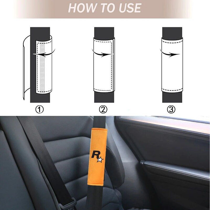 Introducing our 2-piece yellow seat belt covers, infused with the ever-popular GTA Auto 5 design. Crafted to perfection, these covers not only elevate the aesthetic of your vehicle but also provide superior comfort for both drivers and passengers. Whether you're a dedicated gamer, a fan of unique car accessories, or simply in search of a more comfortable drive – these seat belt covers are tailored just for you.Outstanding Features