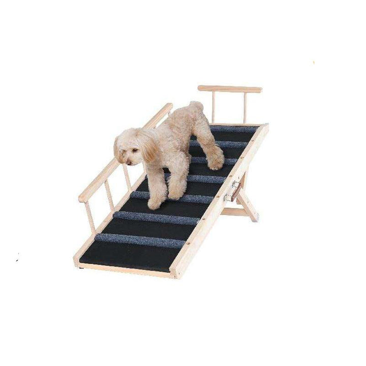 • Durable Pine Wood Construction: Made from solid pine wood, this ramp is exceptionally sturdy and capable of supporting pets up to 250 lbs.