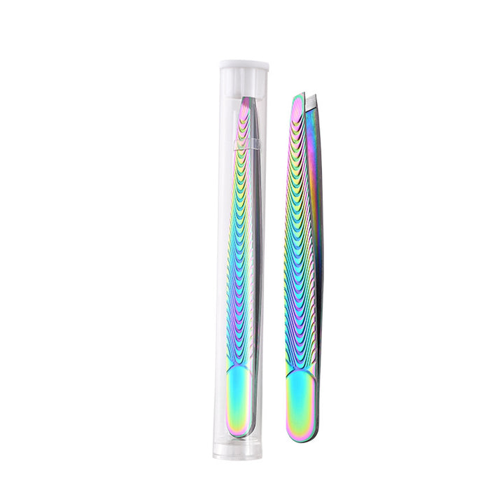 Crafted from high-quality stainless steel, these tweezers offer durability and precision. The slant tip design ensures you can easily grab even the finest hairs with accuracy. The vibrant rainbow coating not only adds a touch of fun to your grooming routine but also provides a non-slip grip for enhanced control.- Material: Premium stainless steel