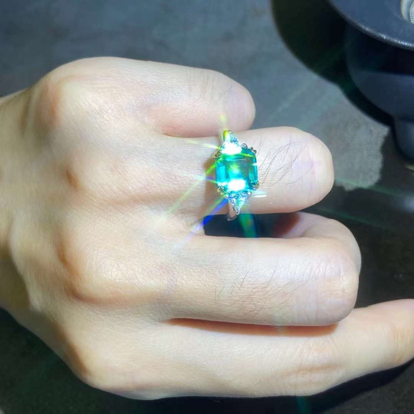 Micro-inlaid Gang Drill Aquamarine Women's Ring