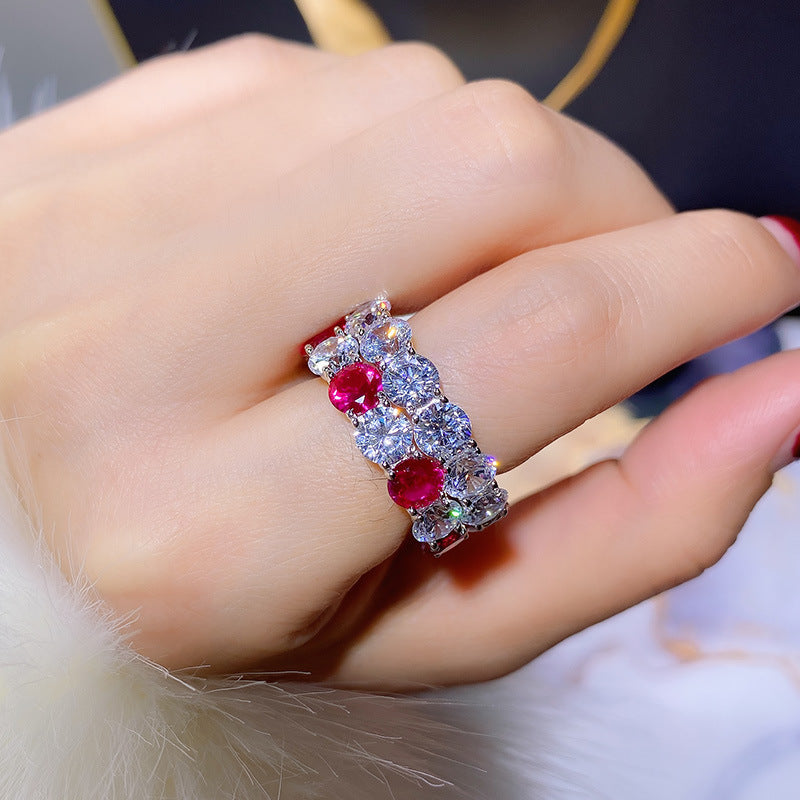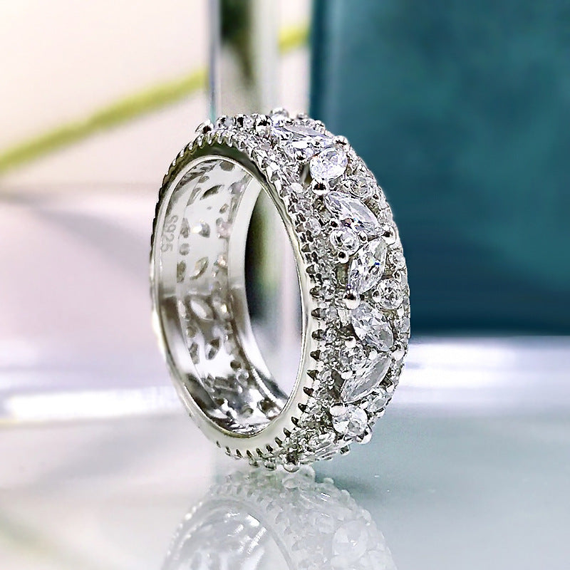 Horse Eyed Women's Full Diamond Wide Ring Simple Style