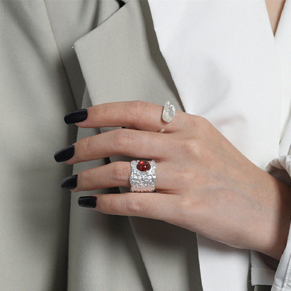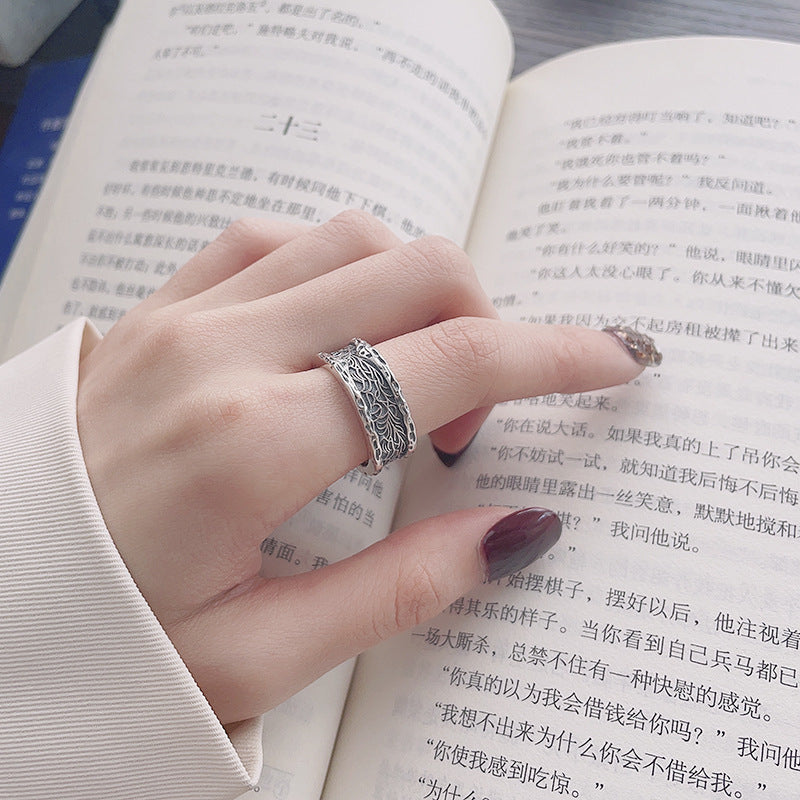 Sterling Silver Irregular Tang Grass Pattern Wide Ring