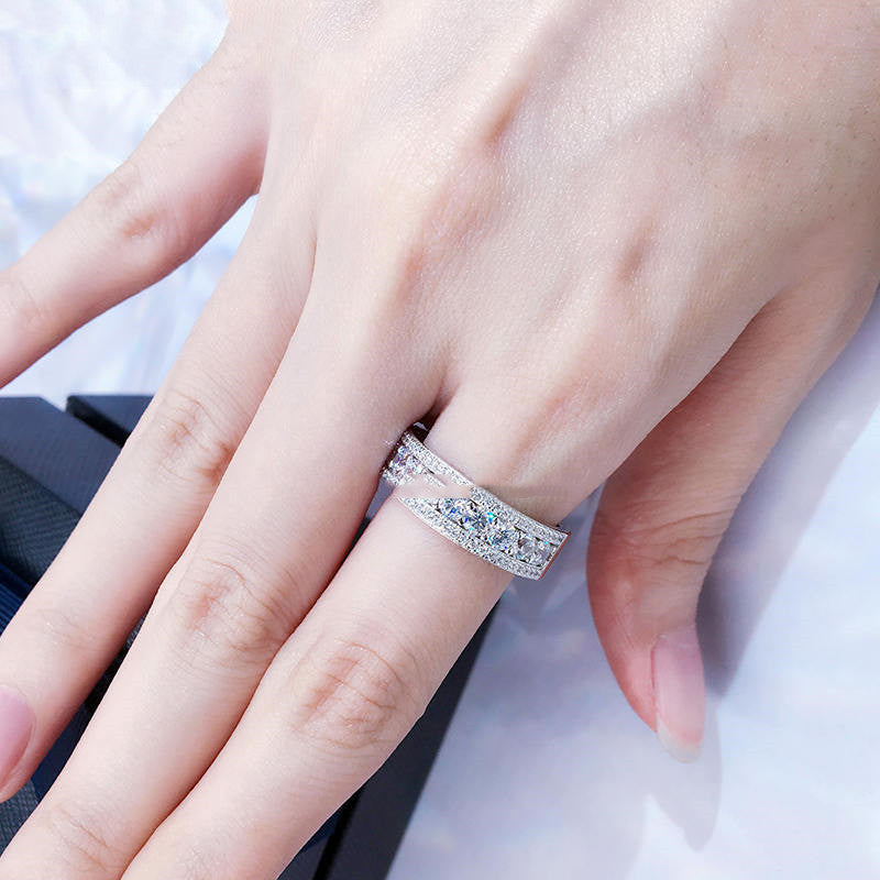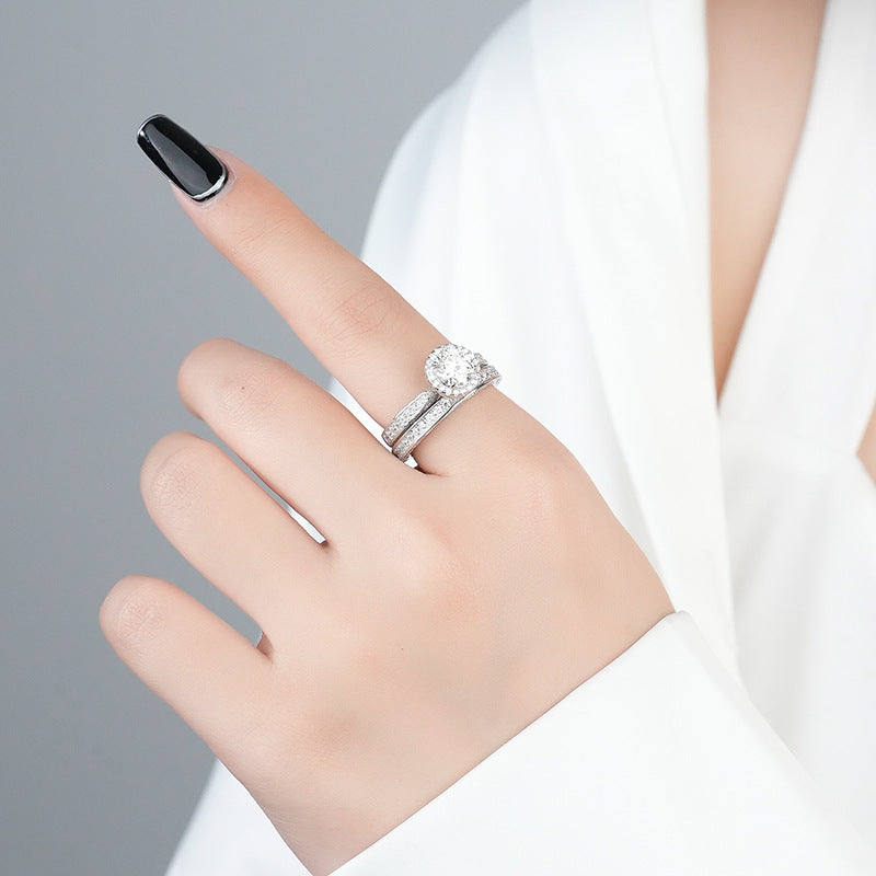 Luxury 1 Karat Moissanite Ring S925 Sterling Silver All-matching Elegant Set