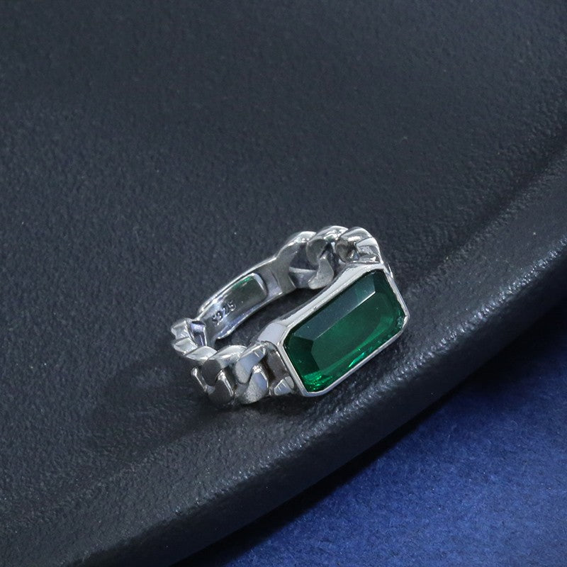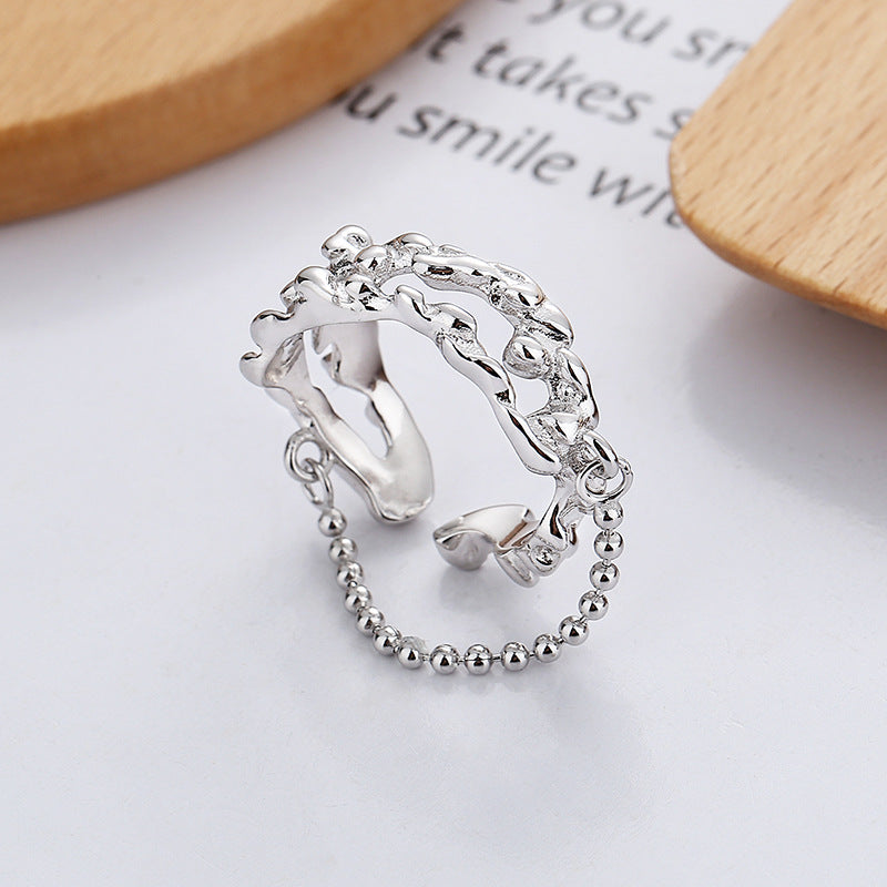 S925 Sterling Silver Round Beads Chain Stitching Geometric Ring