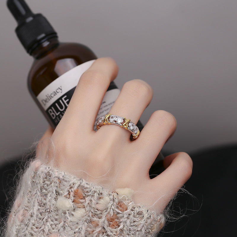 Sterling Silver Retro Korean Type Geometric Circle Line Crisscross Ring