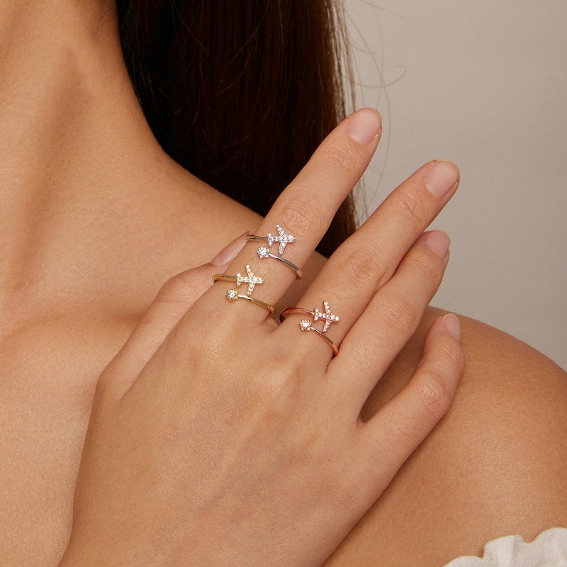 Women's Semi-circular Diamond Fashion Temperament Personality Index Finger Ring