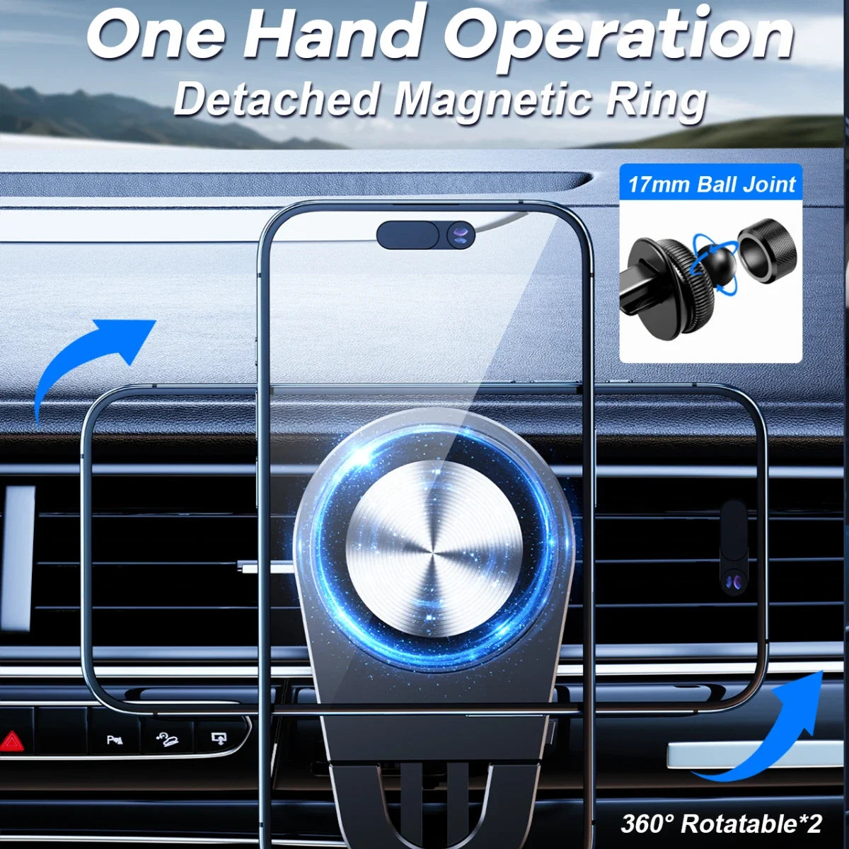 Experience the ultimate in driving convenience with our sleek and durable aluminum magnetic car phone holder. Designed to fit effortlessly into your car’s air vent, this phone stand is perfect for anyone seeking a stylish and functional way to keep their phone within easy reach. Ideal for iPhones, Samsung devices, and Xiaomi phones, this holder combines modern aesthetics with practical functionality, ensuring your phone is always secure and accessible while you drive.