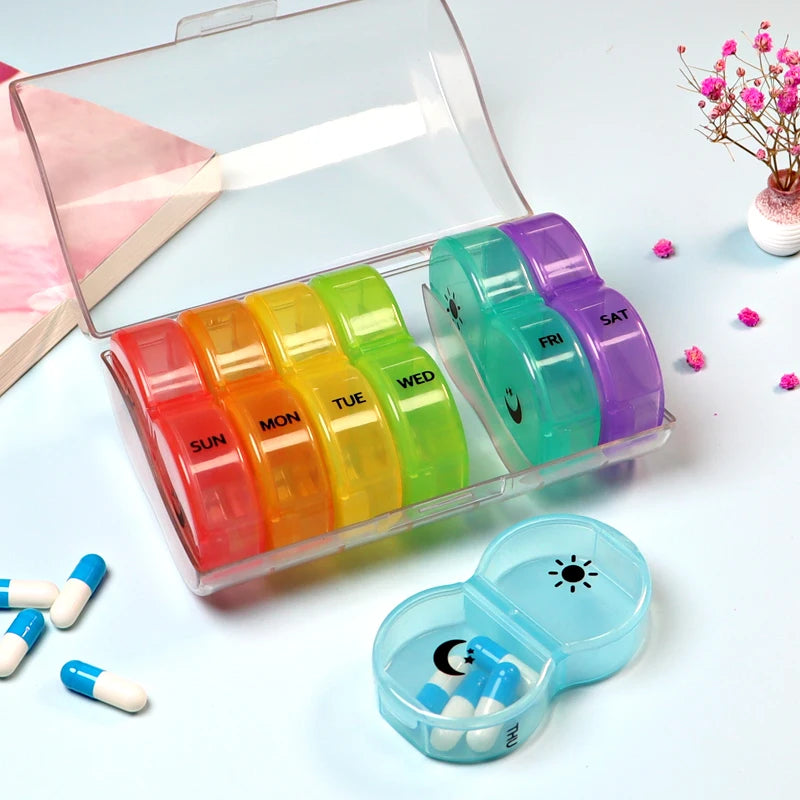 Keep track of your daily medication regimen effortlessly with our Weekly Pill Organizer. Designed for convenience and peace of mind, this pill box helps you manage your pills, vitamins, and supplements efficiently, ensuring you never miss a dose.