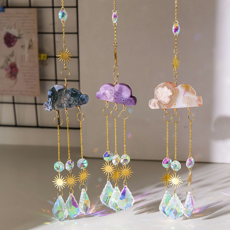 Natural Crystal Agate Cloud Sun Catcher Ornaments Window Sill Forest Garden Wind Chimes Color Lighting Pendant