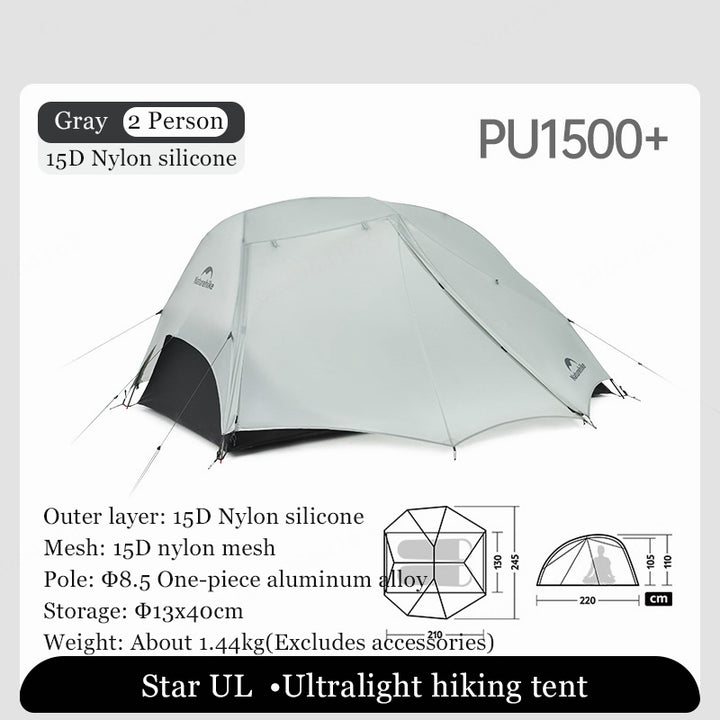 This tent is packed with features that make it a top choice for outdoor enthusiasts. Constructed with 15D silicone-coated fabric, it offers excellent weather resistance without adding unnecessary weight. The double-layer design provides extra protection from the elements, while the aluminum alloy poles ensure stability and strength.- 15D silicone-coated fabric for lightweight durability