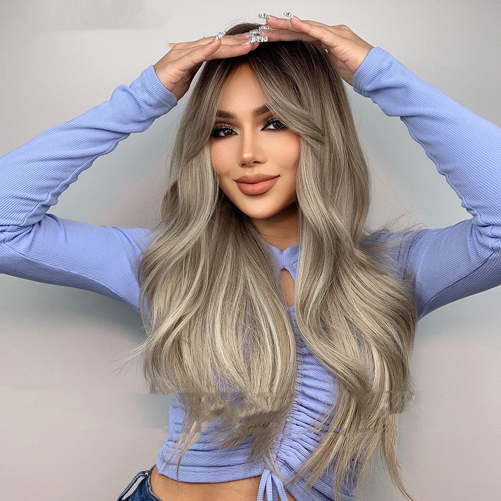 Wig Women's Long Hair Long Straight Hair Natural Highlight