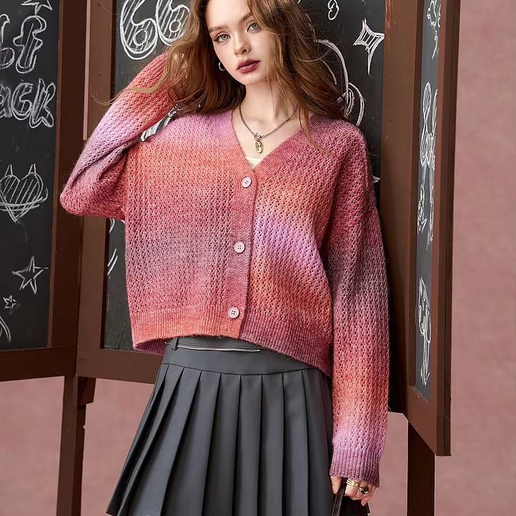 Autumn Gradient Color V-Neck Sweater - Sweet and Versatile Cardigan