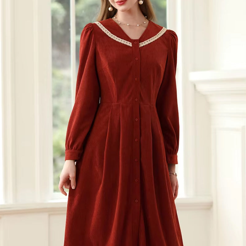 Elegant Vintage Red Long Sleeve Knitted Dress