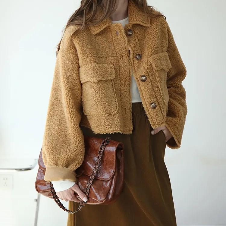 Cozy Faux Fur Women’s Winter Coat with Pockets and Long Sleeves