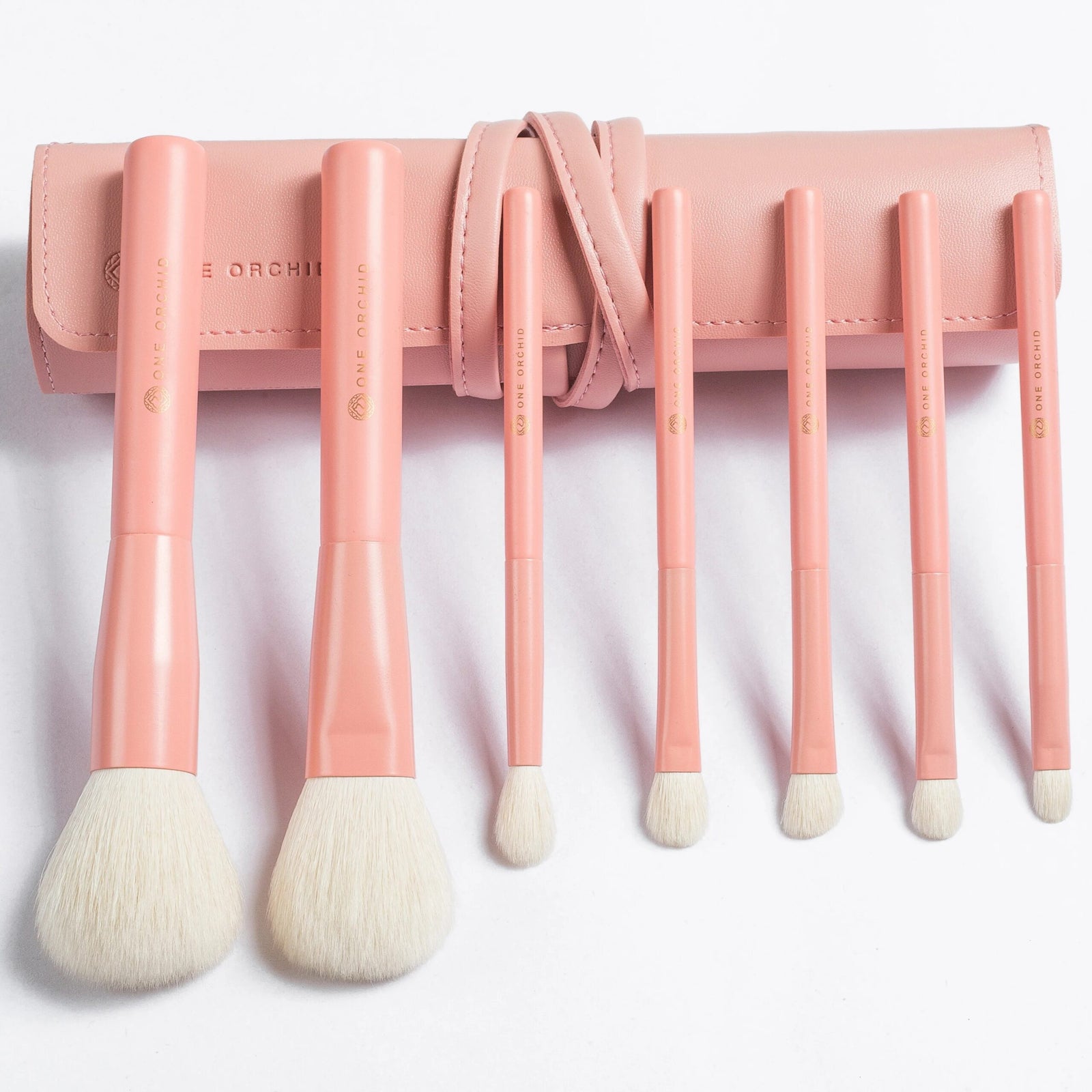 7 Pcs Pink Makeup Brush Set – Natural Goat Hair for Powder, Eyeshadow, Blending & More
