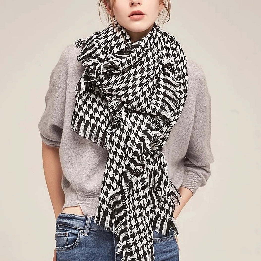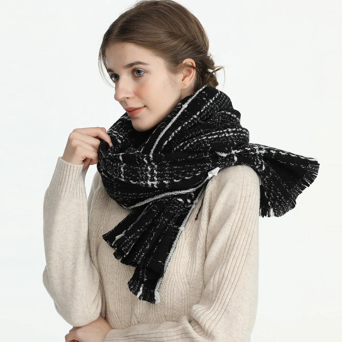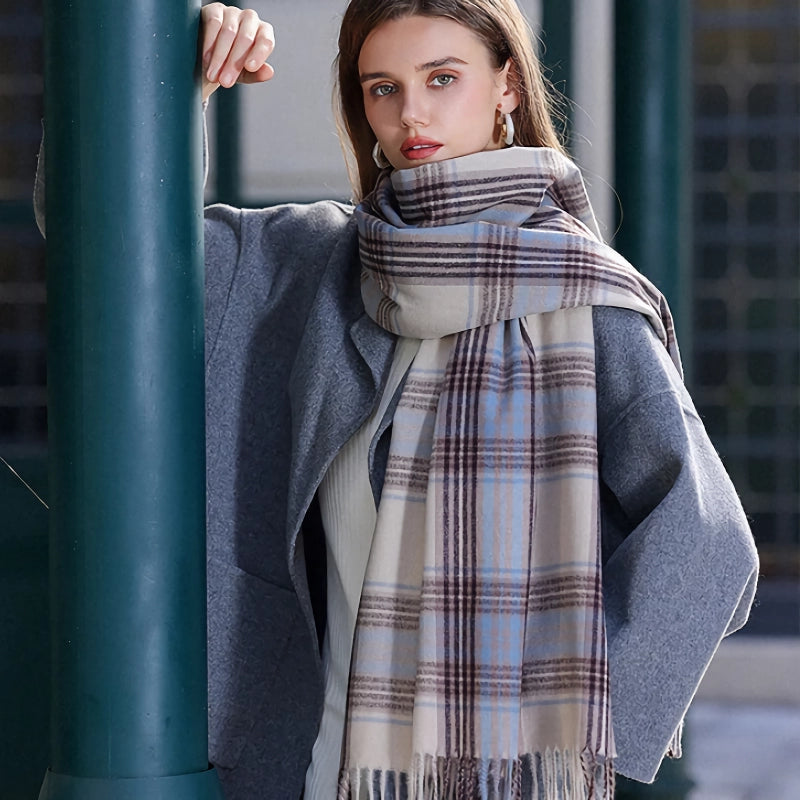 Luxury Plaid Cashmere Scarf for Women – Warm Pashmina Shawl with Tassels