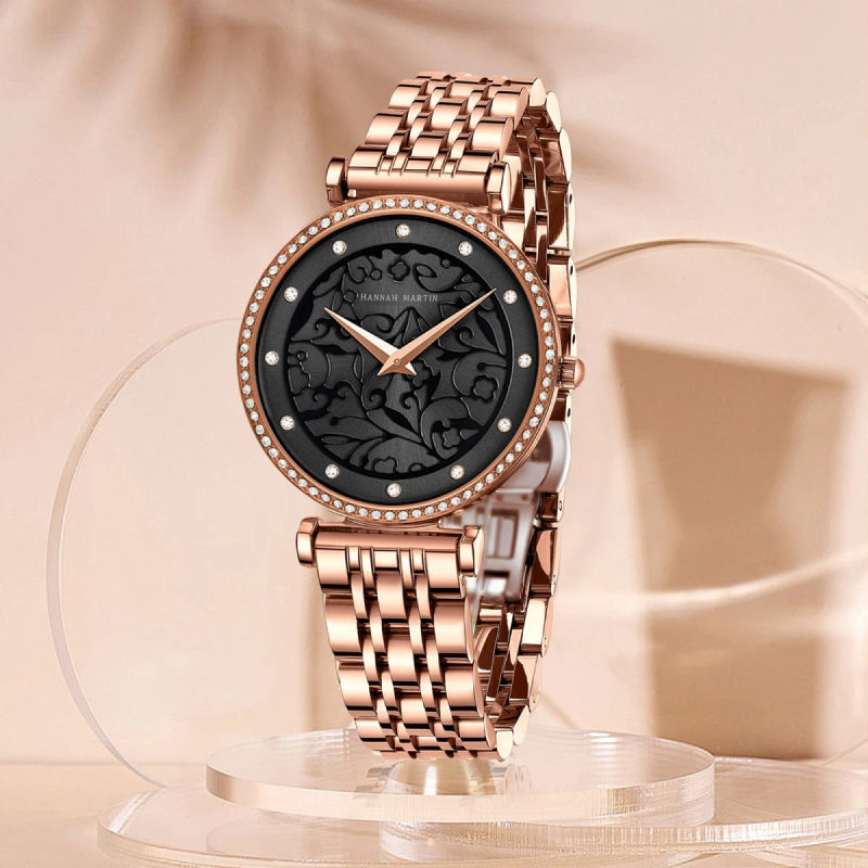 Elegant 3D Printed Stainless Steel Quartz Watch with Water Diamond