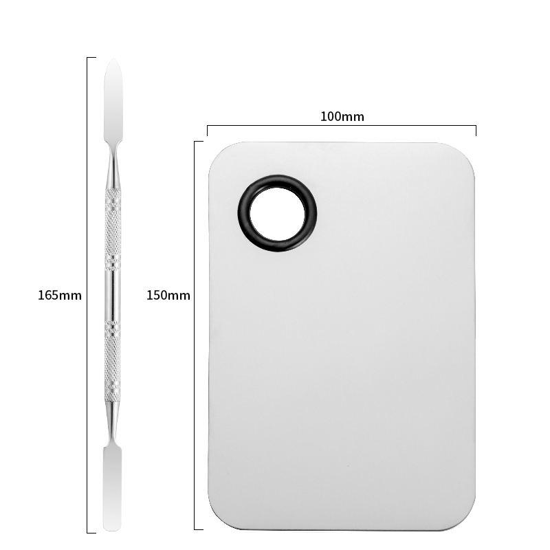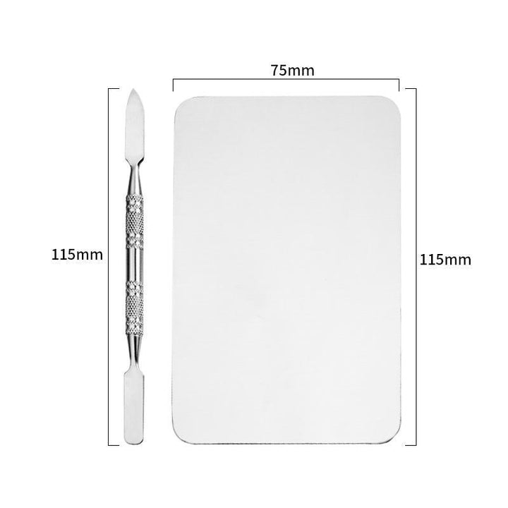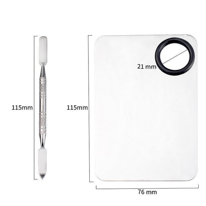 Unleash your inner artist with our Stainless Steel Nail Art and Makeup Mixing Palette with Spatula. This versatile tool is perfect for makeup enthusiasts and professionals alike. Whether you're blending foundation, mixing nail polish, or creating intricate eye shadow designs, this palette offers a smooth, durable surface for all your cosmetic needs. Made from high-quality stainless steel, it's designed to withstand the rigors of daily use while maintaining its sleek, polished look. The palette features a smooth, easy-to-clean surface that ensures your colors remain true and vibrant. Its compact size makes it convenient to carry in your makeup bag or kit, while the accompanying spatula allows for precise mixing and application. This tool is perfect for both professional makeup artists and those who love experimenting with their look at home.Product Features