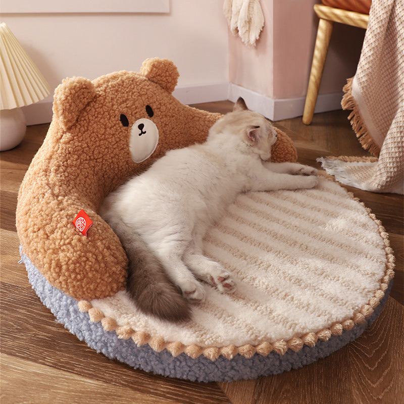 Give your furry friend the ultimate comfort they deserve with our Bear Shaped Cozy Pet Bed, designed to be as inviting as it is adorable. This pet bed is perfect for small cats and dogs weighing up to 16.5 lbs, providing them with a soft, warm, and safe place to rest and sleep. Whether it's a cozy nap during the day or a good night's sleep, this pet bed ensures your pet is always comfortable and secure. What makes this pet bed special is its unique bear shape, which not only adds a cute touch to your home but also creates a snug environment for your pet. The bed's heightened backrest offers additional support, making it an ideal place for pets who love to curl up. The interior is lined with plush material, while the removable and washable mat ensures easy cleaning and maintenance. Plus, the anti-slip bottom keeps the bed in place, providing stability on any surface.