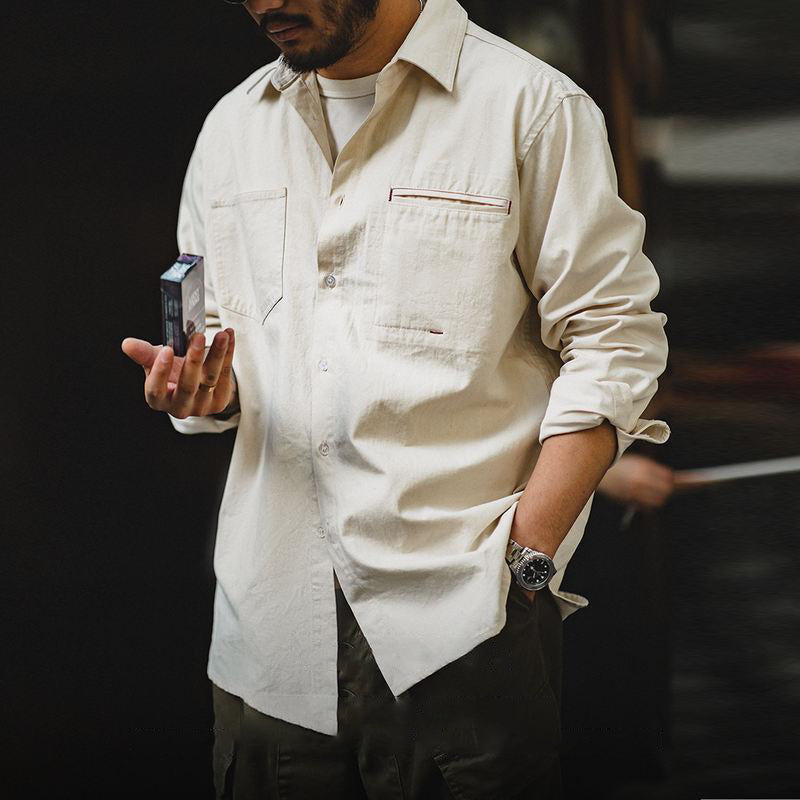 Retro Cotton Polo Collar Long Sleeve Shirt