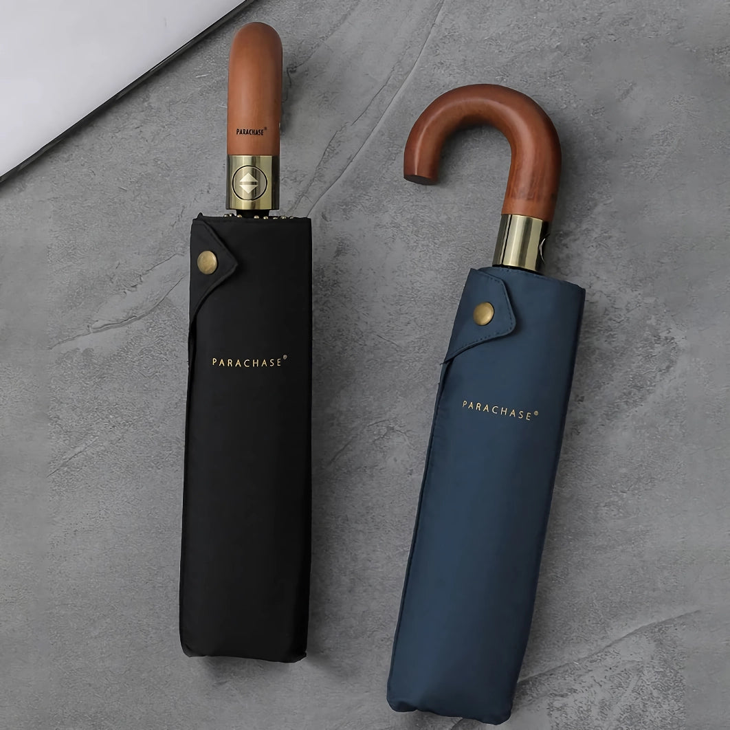 Automatic Windproof Men's Folding Umbrella with Wooden Handle