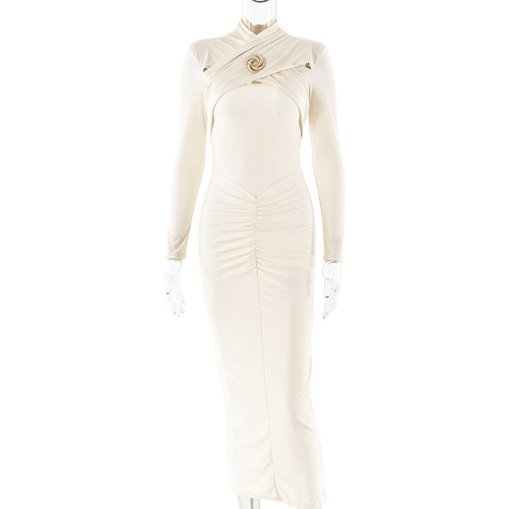 Sexy Slim-fit Pleated Hollow-out Long Sleeve Dress