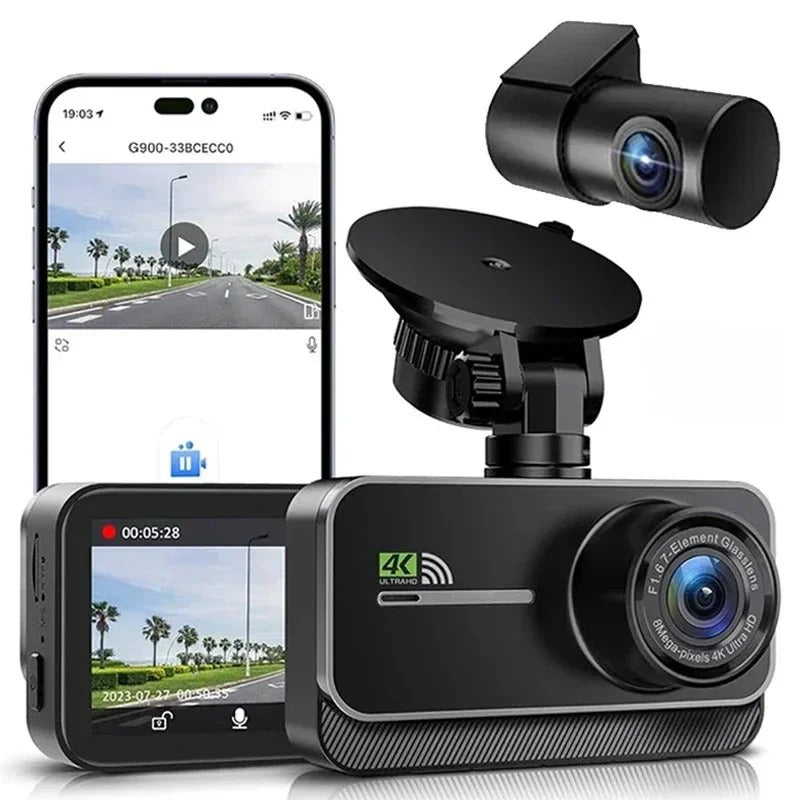4K Dual Dash Cam Front and Rear with GPS, Wi-Fi, Night Vision, and 32GB Card