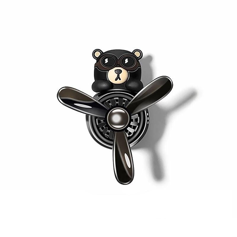 Refreshing Pilot Bear Car Air Freshener with Rotating Propeller - Lemon Scent