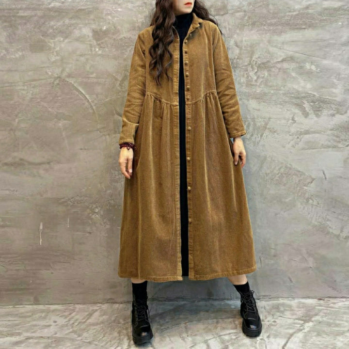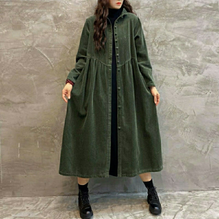 Retro Artistic Corduroy Women's Dust Coat Spring Long Below The Knee Outer Wear Corduroy Loose