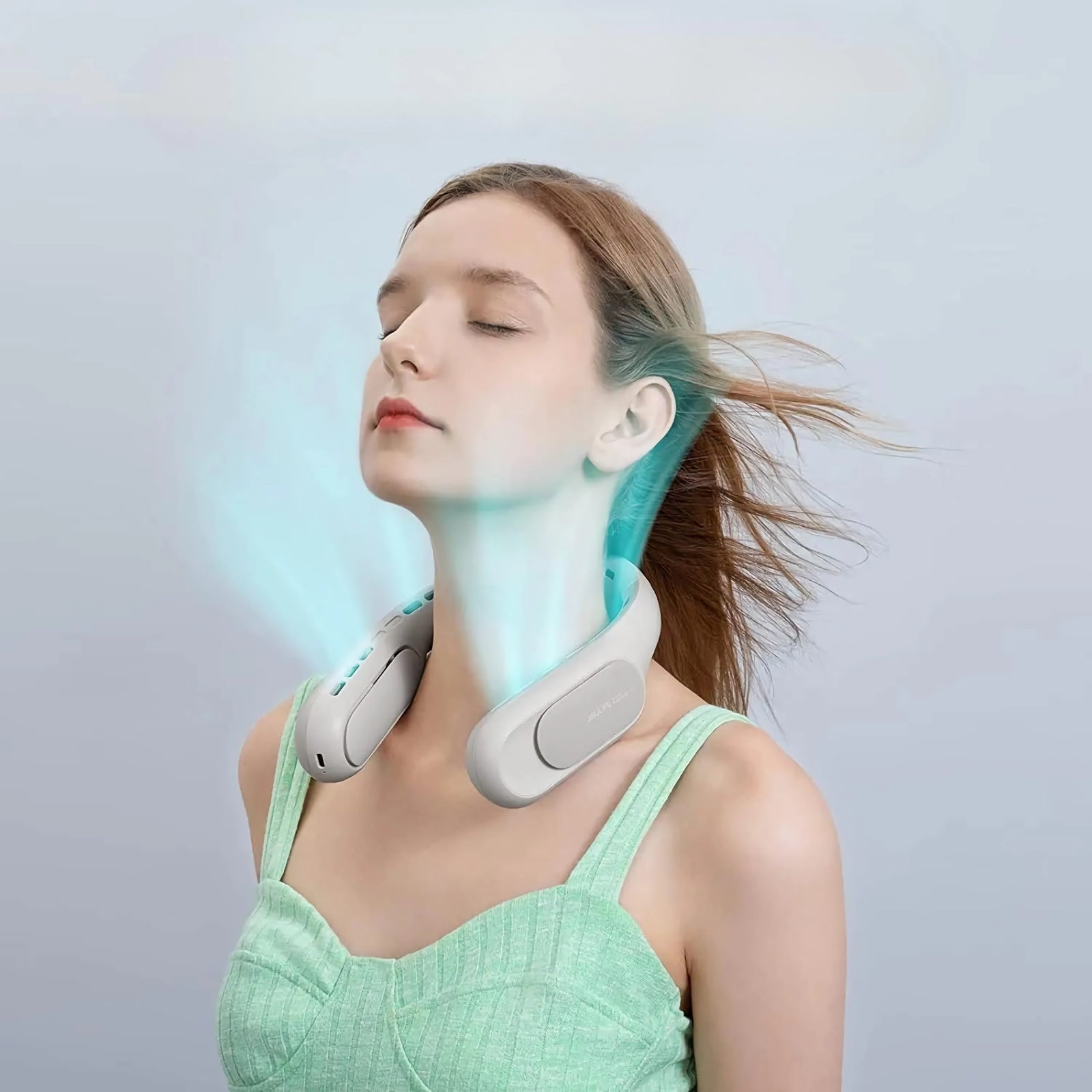 Portable Rechargeable 4-Speed Bladeless Neck Fan with Metal Brace