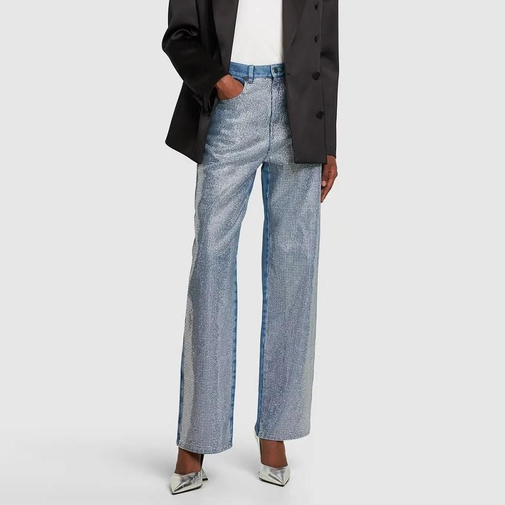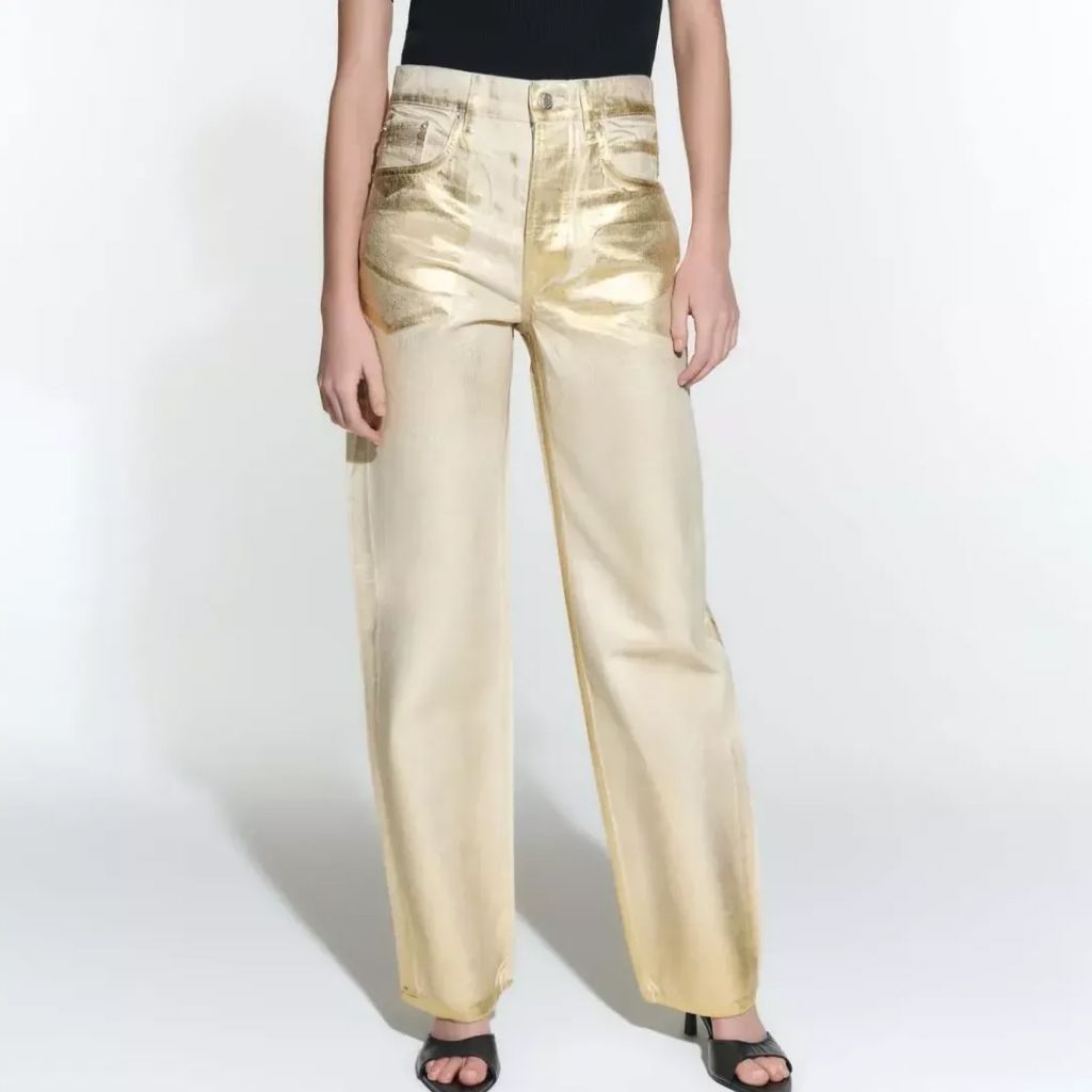 Metallic Gold Silver Straight Leg Jeans