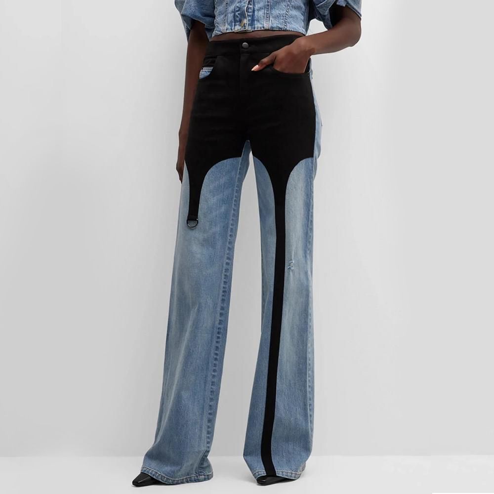High Waist Slim Fit Patchwork Denim Pants