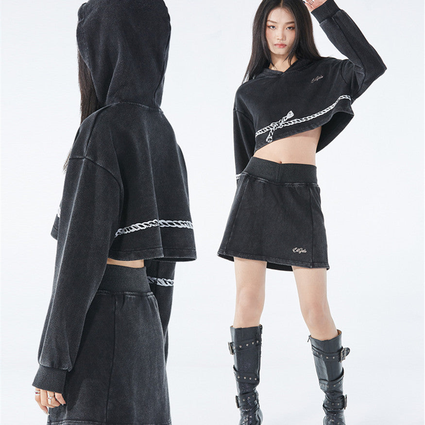 Short And High Hemp Rope Dark Style Hooded Sweater