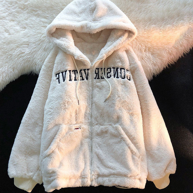 Women's Coat With Cashmere Padded Hooded Sweater