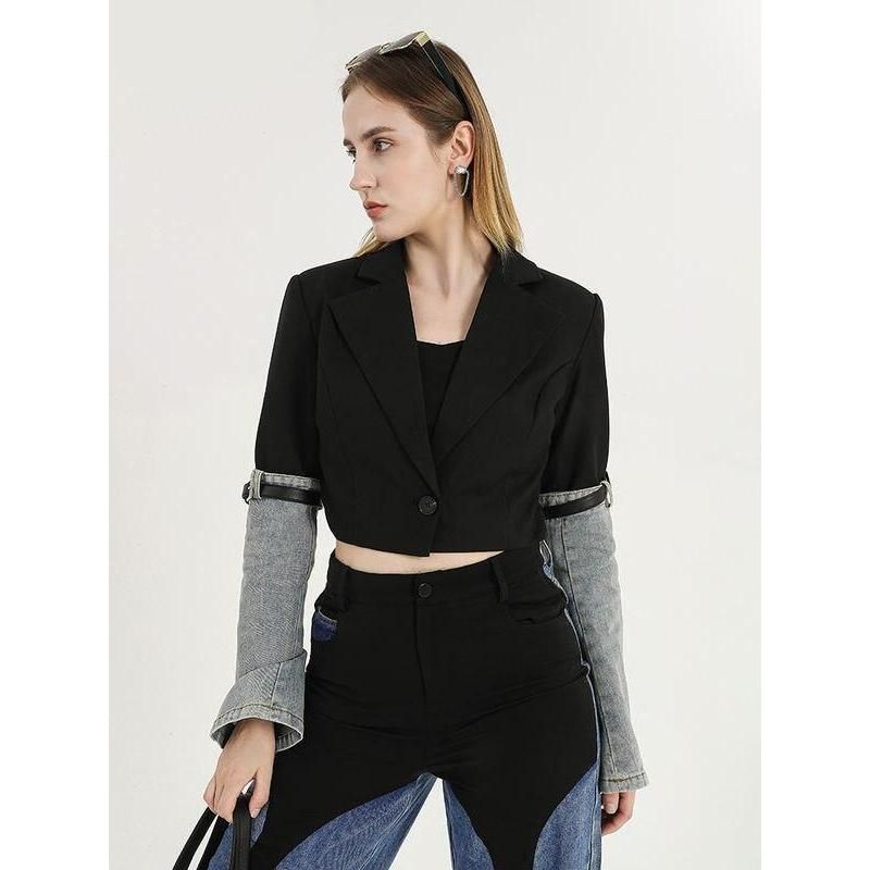 Step into the season of autumnal bliss with our Chic Denim Patchwork Blazer, a perfect blend of style and comfort. Designed for the modern woman, this short jacket offers a unique twist to your everyday wardrobe. Its patchwork design, combining denim with sophisticated tailoring, sets it apart as a statement piece that's both versatile and eye-catching.
