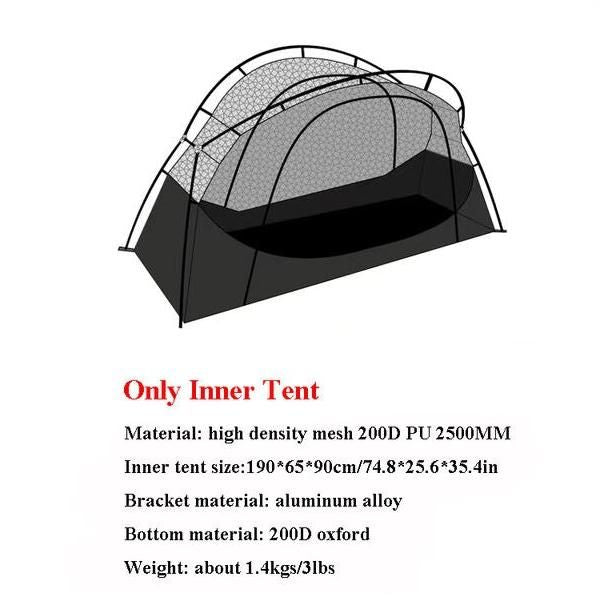 Introducing our Single Person Outdoor Camping Bed Tent - your perfect companion for all your outdoor adventures! Whether you're a solo camper, a backpacking enthusiast, or just someone who loves to gaze at the stars, this tent is designed to meet all your needs. Lightweight, portable, and easy to set up, it's the ideal choice for your next outdoor escapade.